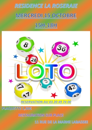 La Résidence La Roseraie convie tous les aînés pour son Loto le mercredi 15 octobre de 15h à 18h. Les personnes âgées extérieures à la Résidence sont les bienvenues pour partager ce moment convivial et chaleureux !