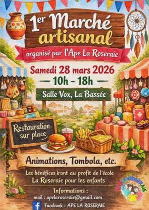 Ce samedi 28 mars, l’APE La Roseraie de La Bassée organise son tout premier marché artisanal à la Salle VOX, de 10h à 18h. Venez partager un moment convivial autour de la créativité et du fait-main !